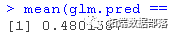 你把glm.fit()的预测结果分配给glm.probs,类型等于因变量。这将对你用来拟合模型的训练数据进行预测,并给我一个拟合概率的向量。