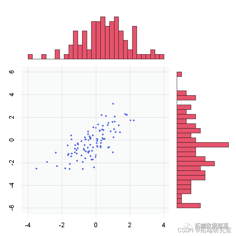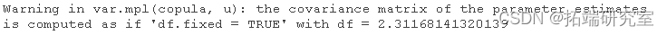 请注意,数据必须通过函数pobs()输入,该函数将真实观测值转换为单位平方[0,1]的伪观测值。