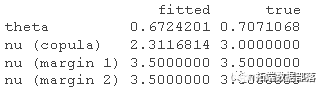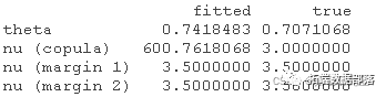 。对于边缘分布,我们还假设 t分布,但具有不同的自由度;为简单起见,此处省略了估计。