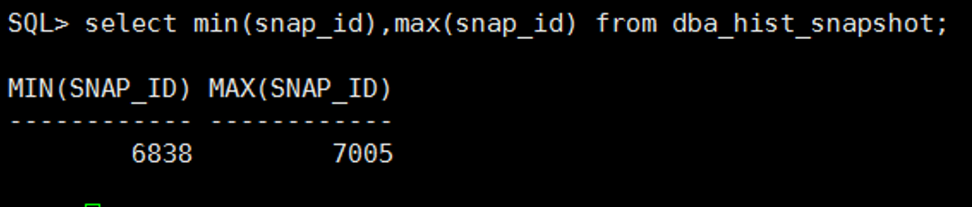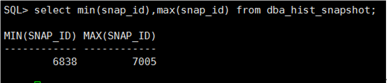 EXECUTE DBMS_WORKLOAD_REPOSITORY.DROP_SNAPSHOT_RANGE(6838, 7004);