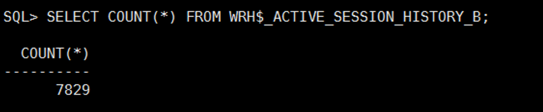 SELECT COUNT(*) FROM WRH$_ACTIVE_SESSION_HISTORY_B;
