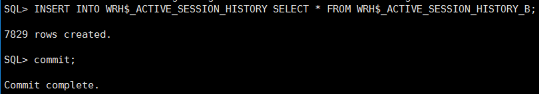 INSERT INTO WRH$_ACTIVE_SESSION_HISTORY SELECT * FROM WRH$_ACTIVE_SESSION_HISTORY_B;COMMIT;