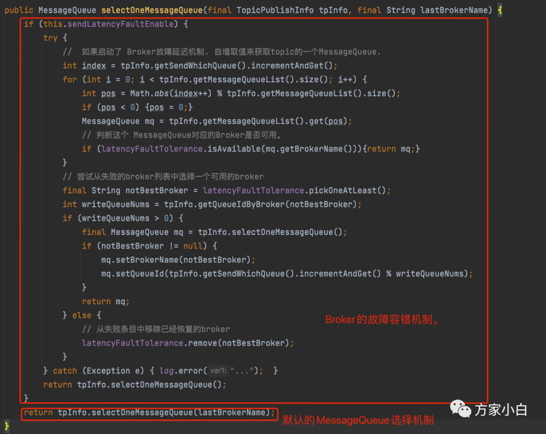故障延迟机制。看下图中的代码,我们假设 启用了 Broker