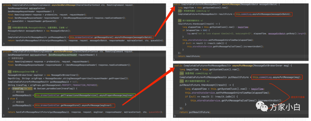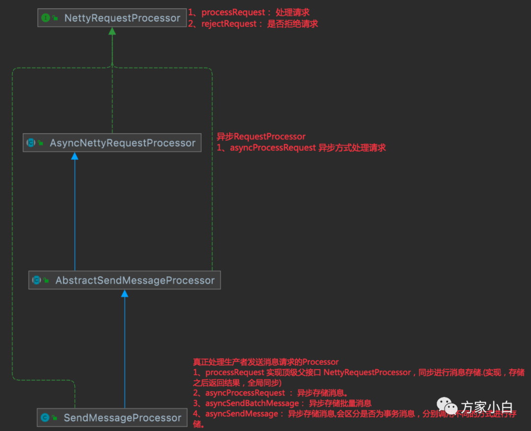 端存储消息, 再到 消费者消费消息。将整个流程都跑通了。每个过程都不是我们想象的那样直接发送消息给Broker