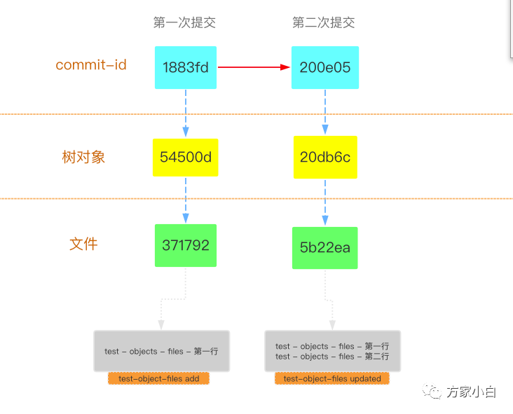 中存储了两个文件,分别是我们第一次提交和第二次提交的内容。