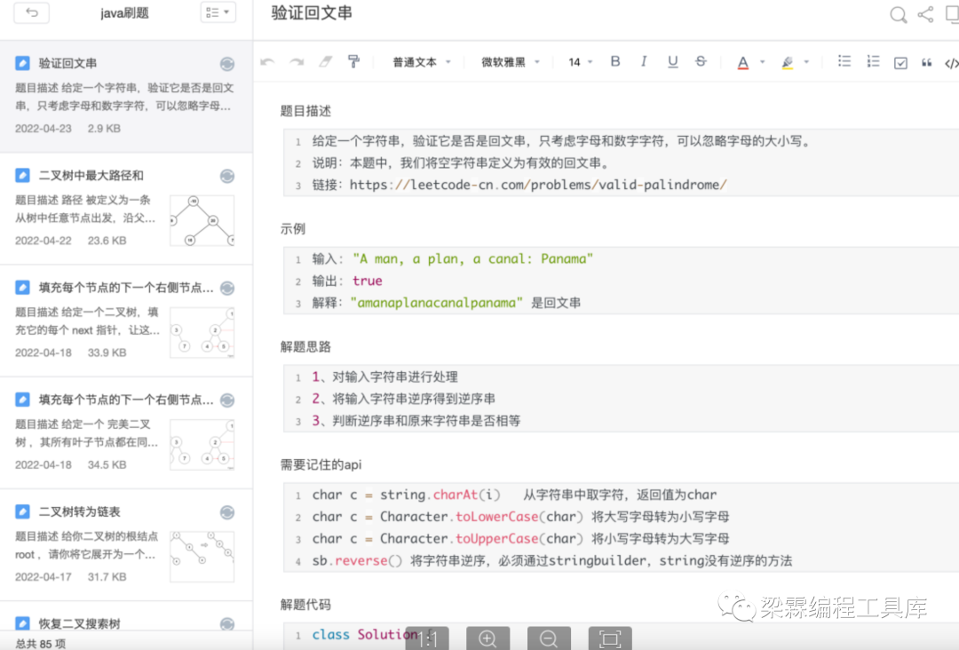 1、每道题包括的内容:leetcode的题目链接、题目描述、解题思路、代码实现、解题技巧tips、本题涉及的api的使用说明。