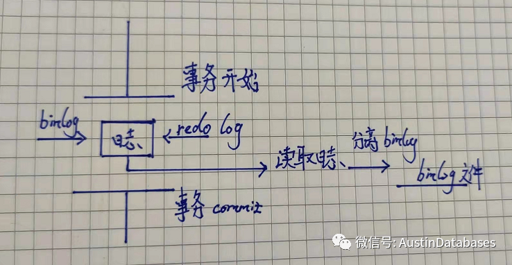 当事务要提交是,事务binlog events 写入到redo 中,同时将REDO 持久化BINLOG 则采用单独的线程周期化的存储到存储中,整体优化的数据日志的写入的方式。