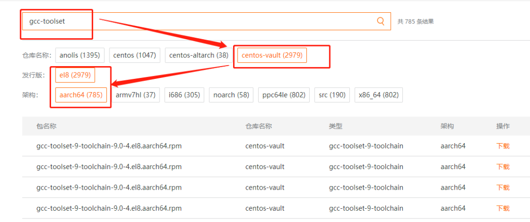 。如果你连 yum 源也装不了你就直接把 rpm 包给下载下来。门牌号:https://developer.aliyun.com/packageSearch?word=gcc-toolset
