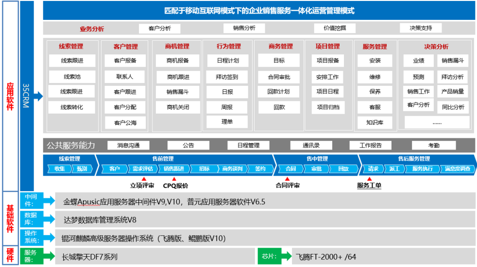 全球产业进入工业经济向数字经济加速转型过渡期,以数字经济为核心的产业融合发展成为趋势。工业信息化成为数字经济与工业融合的典型代表,是全球未来产业发展的代表方向。目前,我国的数字化进程已经进入到数智化时代,市场对生态级数智化需求较高,以打造数智生态体系,并将所有业务数智化为根本目标,企业对数智产品的独特需求推动了更具有中国本土化特色的信息化进程。麒麟软件携手傲融软件及飞腾公司,打造自主CRM数字业务系统联合解决方案,在自主创新基础软硬环境下稳定运行,助力企业数字化转型。