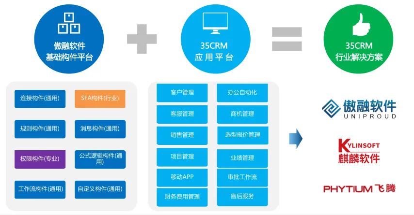 联合解决方案以飞腾ARM架构CPU为“芯”, 银河麒麟桌面操作系统为“魂”,傲融CRM软件为“果”的自主创新解决方案,旨在满足自主创新环境下的制造、金融以及ICT等行业客户构建CRM数字业务系统。通过前期的功能测试以及在企业实际场景中的CRM应用检测,傲融软件V6.0在以银河麒麟桌面操作系统和飞腾ARM架构CPU为基础的自主创新体系中已经实现100%功能落地并完美运行,方案各项性能指标与与国外主流系统持平,在典型业务场景下功能效果出色,为行业客户在生产业务系统选型时增加了新选项。