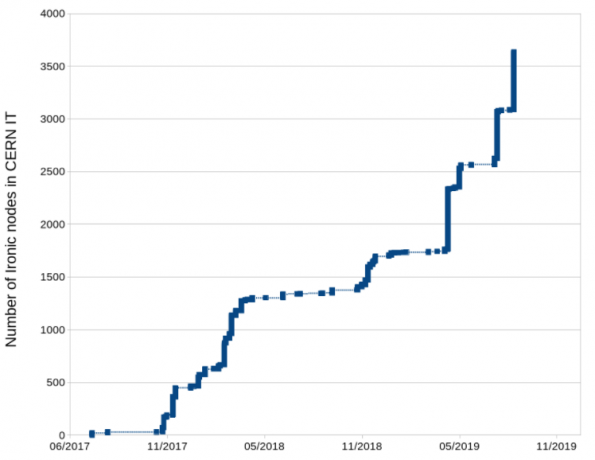 几年来,CERN IT数据中心中部署的所有物理服务器都是OpenStack私有云产品的一部分,使用Nova和Ironic。最初只有几个测试节点,现在已经发展到5000多台物理机,目标是大约10000个节点。