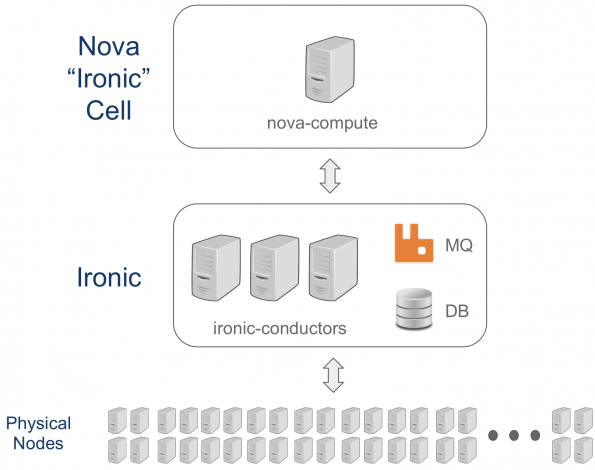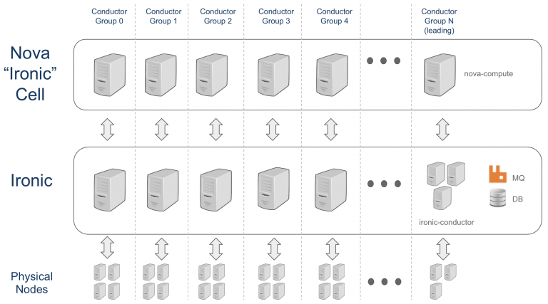 Ironic有一个专用的Nova单元,这是划分和管理基础设施的标准方法。在专用的Nova单元中,只有单元控制平面、nova-conductor、RabbitMQ和nova-compute。这个nova-compute负责Nova和Ironic之间使用Ironic API的所有通信。可以基于哈希环并行运行几个nova-compute来管理节点,但是当测试这个功能时,发现了几个问题。