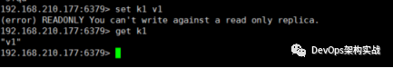 5、主从的读写分离,选择177服务器,执行命令:set k1 v1
