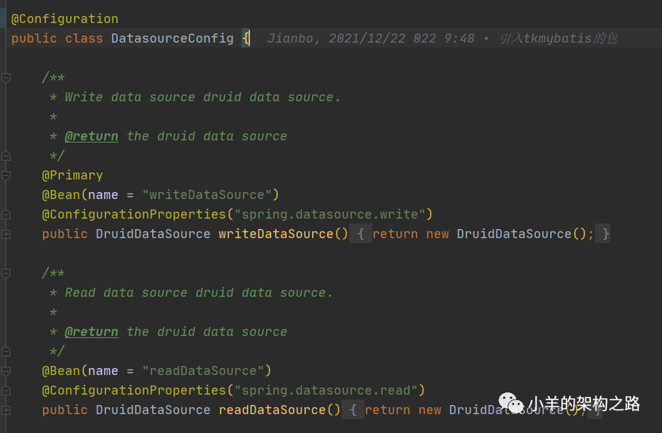 比如我们经常在数据库连接池配置 @bean 注解,用于生成数据源实例。