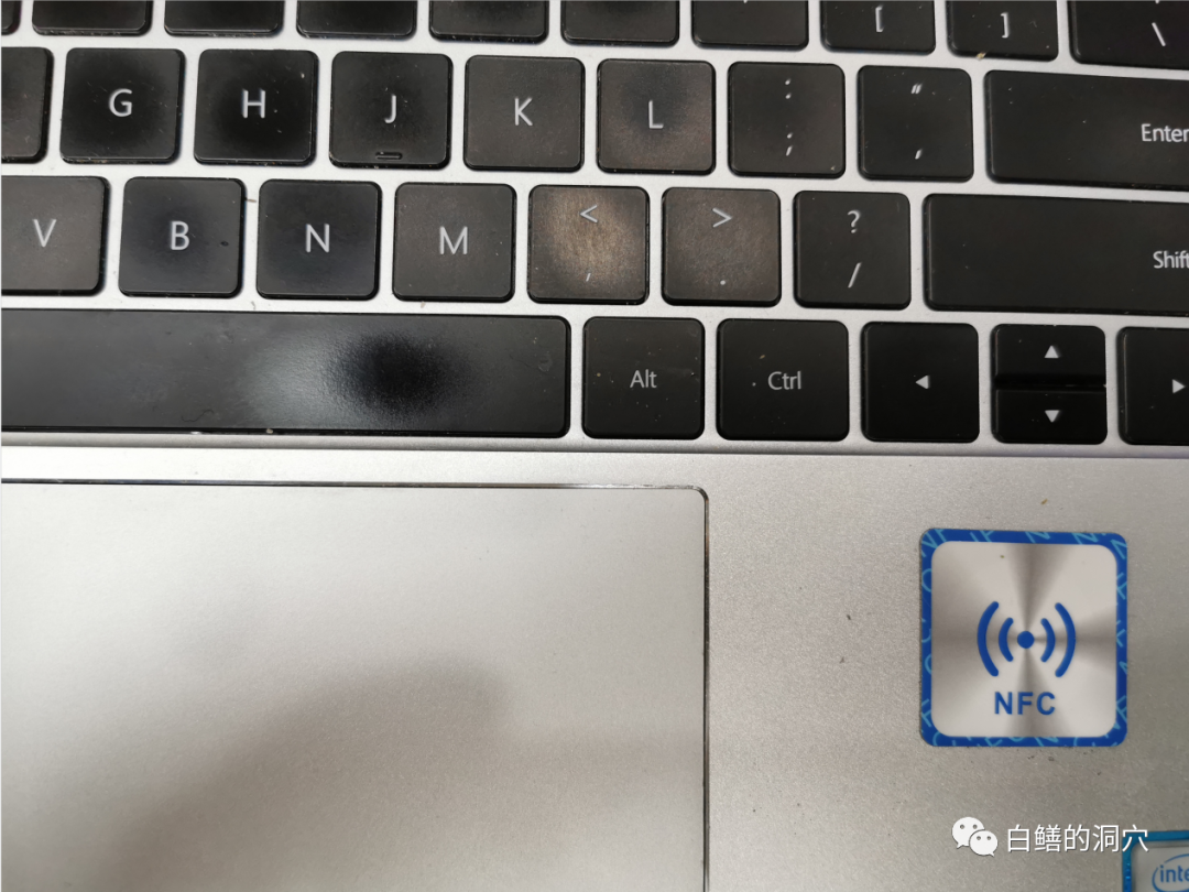 老白两年前买了一台华为Mate book 13作为办公使用,上面有一个NFC标签(照片上这个标签是原装标签损坏后自己1块钱一个买了一个换上去的,非华为电脑也可以按照网上山寨的方法安装华为pcmanager,使用多屏互动的功能)。只要手机碰一下NFC标签,就可以完成多屏互动的连接,在电脑上显示出手机的界面。
