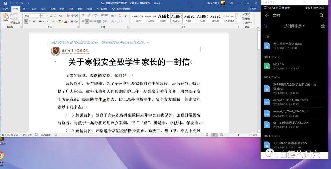 点击这个文件后,文件在电脑的大屏上打开,而不是在手机中打开。你可以查看文件,编辑文件,并保存文件。关闭文件后,手机中的文件就已经编辑好,保存在手机的原来位置了。这种多屏互动能力,才是我们真正需要的。