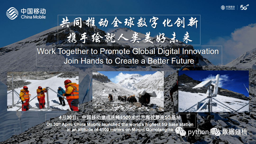 今年4月30日,中国移动在珠穆朗玛峰海拔6500米的前进营地开通全球海拔最高5G基站,成功实现5G信号对珠峰峰顶的覆盖,使全球每个人都可以足不出户探索世界第三极的极致之美,这也是信息技术赋能全人类的一个缩影。中国移动愿与全球同行一起,加强交流合作,共同推动全球数字化创新发展,携手绘就人类可持续发展的美好未来!谢谢大家!