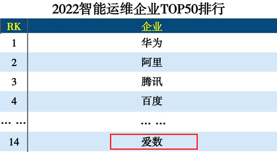 近日,由互联网周刊、eNet研究院、德本咨询联合发起的2022智能运维企业排行榜正式公布,爱数凭借AnyRobot超强的机器数据场景化运维能力,与华为、阿里、腾讯等头部企业共同入围,收获实力认可!