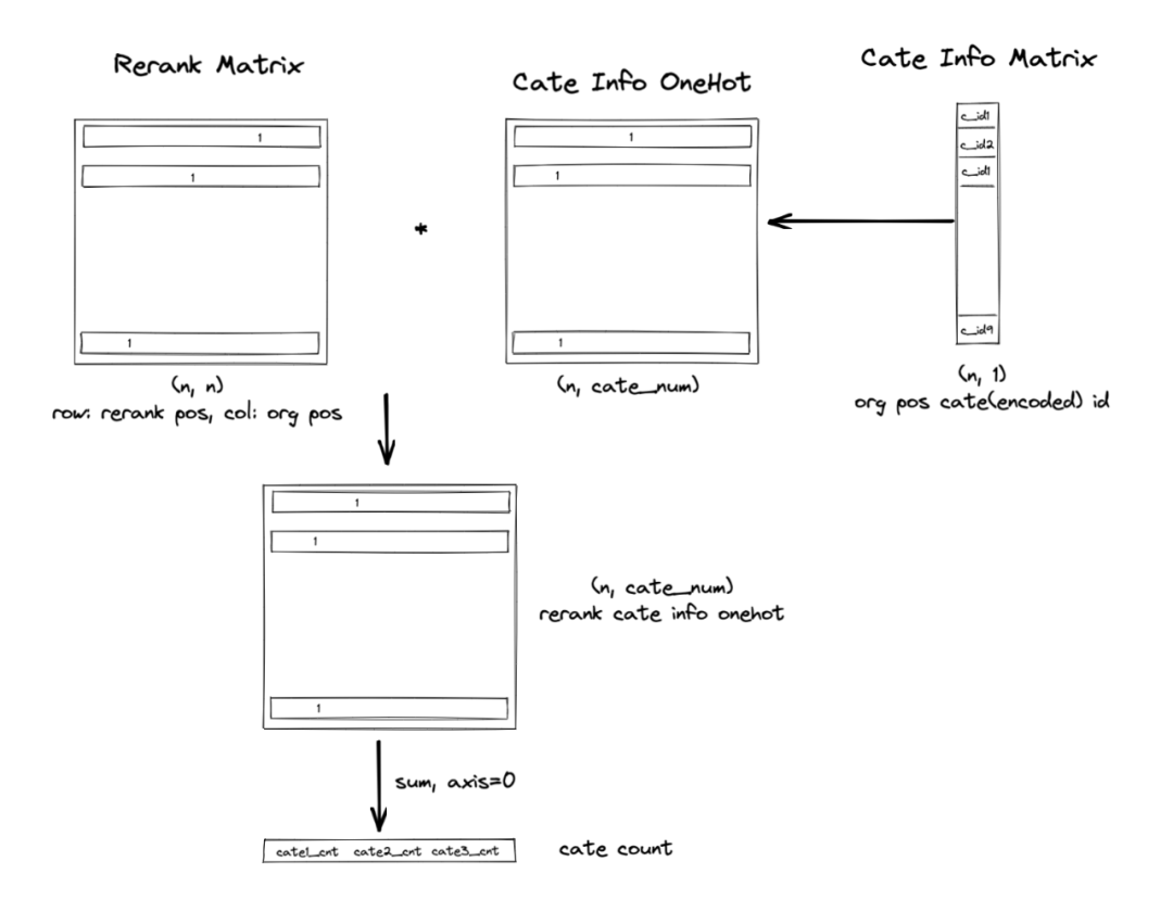 最终在 Rerank Cate Info Onehot 矩阵中计算类目占比约束。