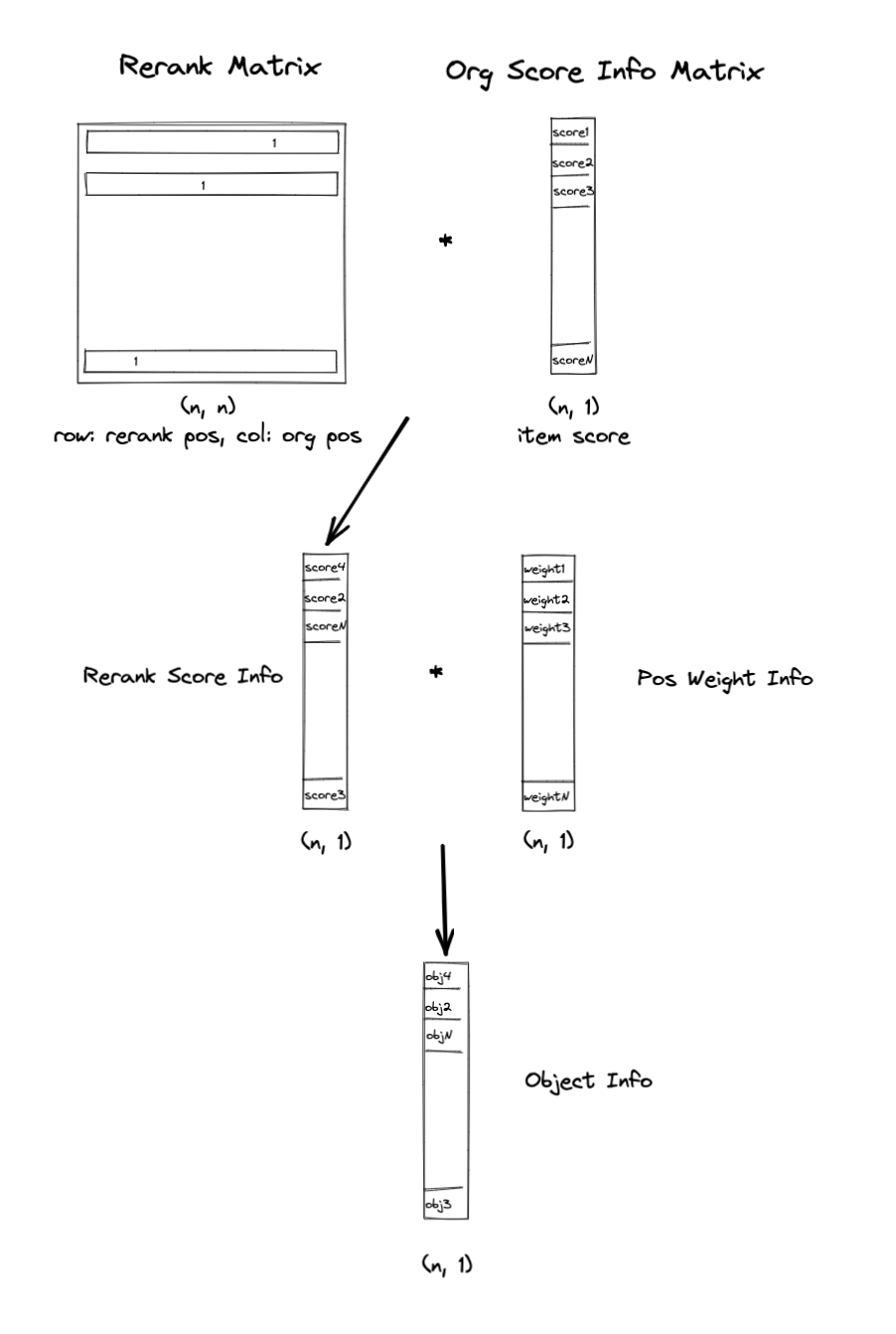 重排问题可以视为0-1规划,Rerank Matrix为重排矩阵,其中代表该Item重排结果,行数据 为重排后的位置,列数据 为重排前位置。 定义变量
