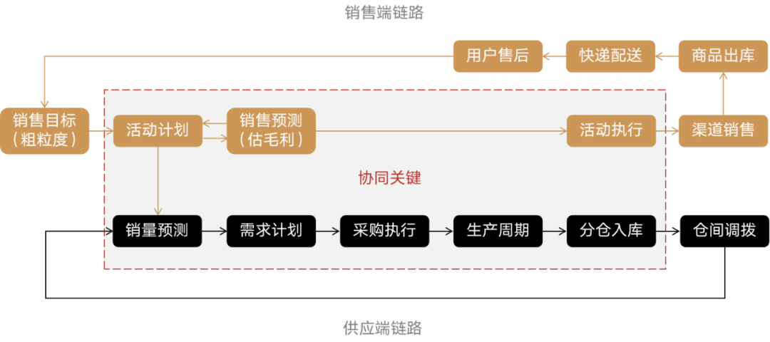 品牌商的商业目的是在商品销售过程中,平衡库转和缺货,尽可能降低库存积压、商品缺货等带来的各种成本,从而保障销售额的同时最大化利润。采销协同是实践中平衡库转和缺货非常有效的方法,“采”对应供应端的补货链路,“销”对应渠道端的销售链路,两条链路并行推进互相协同配合。最理想的状态是,供应端补货的商品量与实际销售的商品量相当,这样既没有库存成本,也没有缺货损失,销售额和利润同时趋向最大化。不然,补货量大于销售量,会增加库存成本;反之则商品缺货,会造成销售损失。
