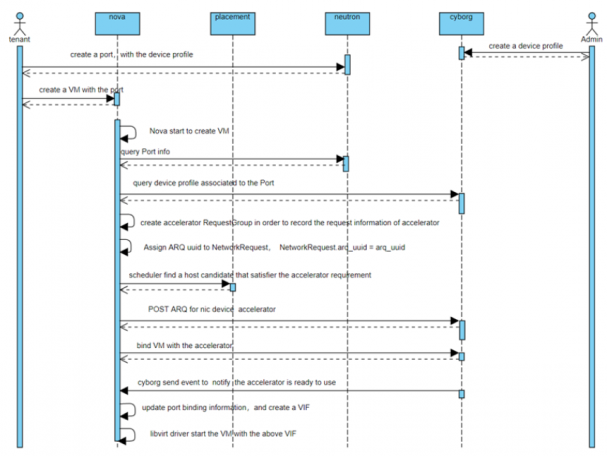 在整个OpenStack中,也做了一些新的改进:Cyborg支持新SRIOV网卡的新驱动程序;Neutron支持一个新的选项来创建一个带有加速器设备配置文件的端口;Nova的改进以检索新的VF NIC并作为接口传递到服务器。