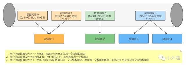 •一个 [Column].bin 其实是由一个个的压缩数据块组成的。每个压缩块的大小在:64kb - 1M 之间
