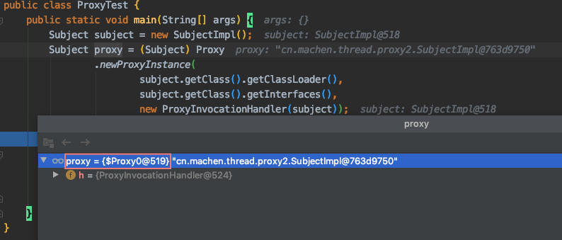 根据代码可以看到,我们并没有实现接口 Subject,继续看一下怎么实现动态代理