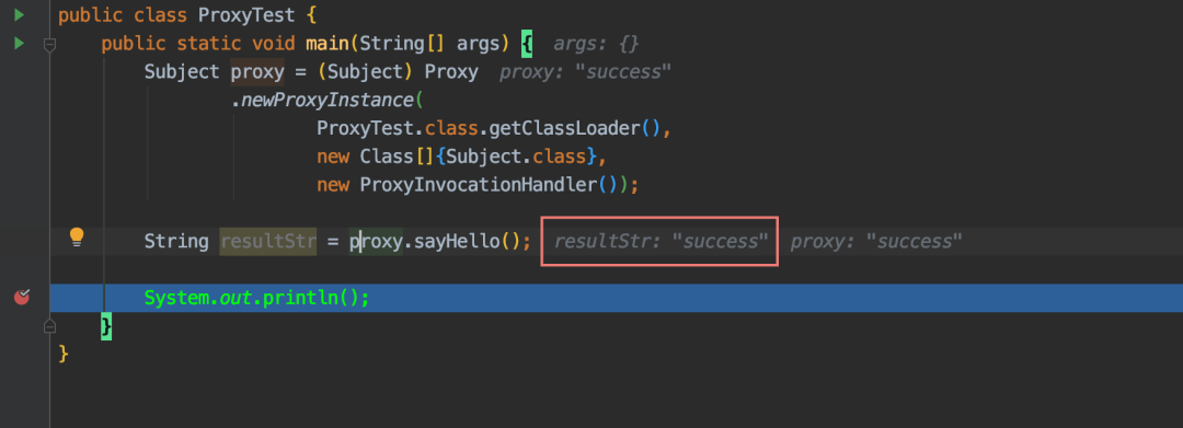 InvocationHandler#invoke 方法返回值是 success 字符串,定义个字符串变量,是否能成功返回
