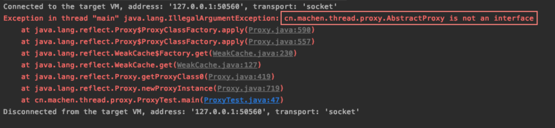 毫无疑问,报错是必然的,JDK 是不能对类进行代理的