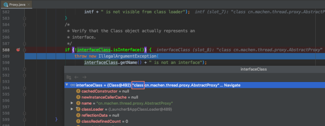 带着小疑惑我们看一下 Proxy 源码报错位置,JDK 动态代理在生成代理类的过程代码中,会有是否接口验证