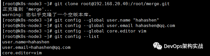 [root@k8s-node3 ~]# git config --global user.name "hahashen"