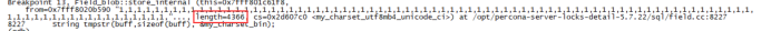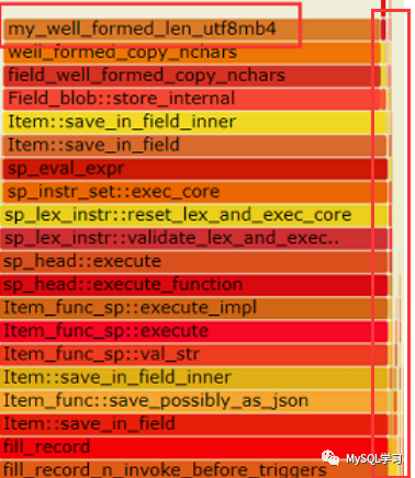 那么很显然,实际上本语句执行异常的情况下,CPU都没有处理正常的逻辑。而其上层调用sp_head::execute_function就是执行函数的上层调用,而这里只有一个自定义函数,因此几乎可以判定是自定义函数内部逻辑遇到了什么问题。接着我们使用pstack对异常情况的执行栈进行了查看,并且多次测试正常逻辑的pstack执行栈,发现其中有一个逻辑入参不断在膨胀,且内存长度不断增加(length),