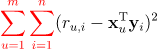 为了求解矩阵Xm×k 和Yn×k,需要最小化平方误差损失函数,来尽可能地使得两个矩阵的乘积逼近评分矩阵 Rm×n ,即