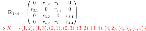 其中 K 为评分矩阵中已知的(u,i) 集合。例如下面的评分矩阵对应的 K为