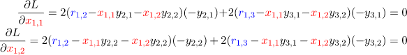 让损失函数对 x1,1,x1,2 分别求偏导数可以得到