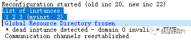 "Reconfiguration started"表示一次集群脑裂的开始。我们可以从List of instances列表中找到出现问题的实例。