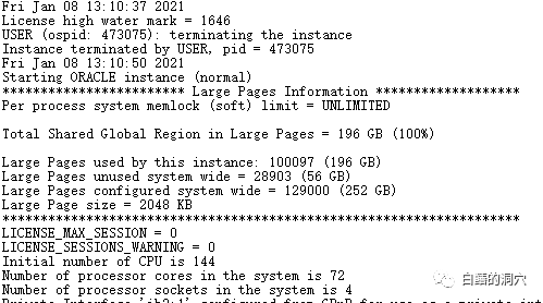 从这个信息我们可以看出,当时是用户进程终结了实例,这种情况大多数是DBA直接SHUTDOWN ABORT了这个实例。在这个案例中,定位问题还是比较简单的。当然也有可能是其他原因导致了实例故障,根据没有出现在instance list上的实例的相关时段的日志进行分析就可以了。