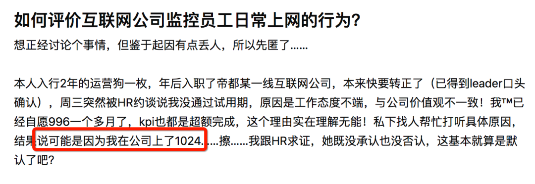 最近浏览到一个知乎问题:某运营同学在试用期期间因为在工作期间上了某 1024 网站,导致试用期不过。