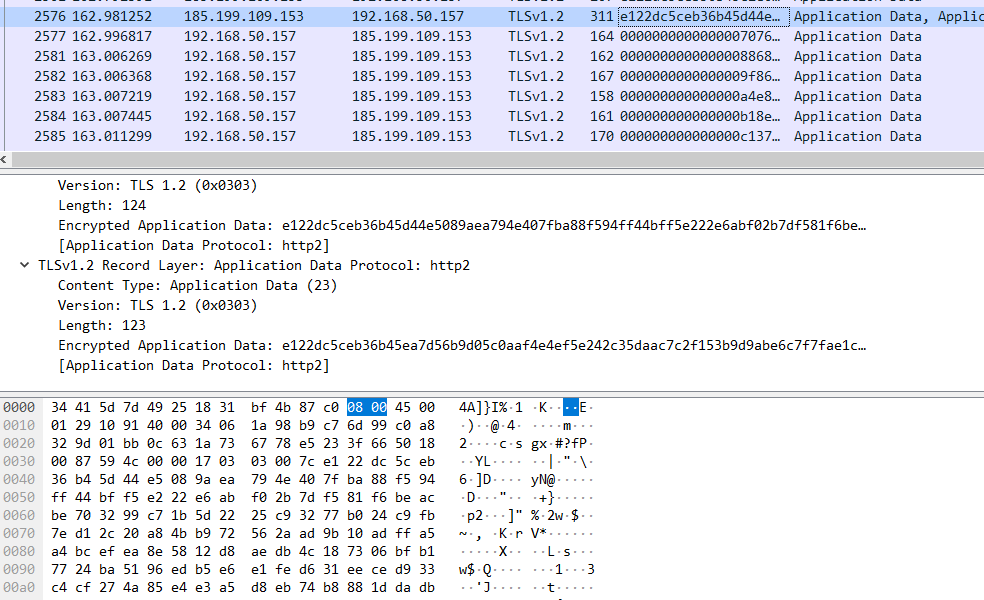 例如,如下图所示,当我访问某个网站,此时通过 wireshark 抓包得到的信息,能获得仅仅是一些通信的 IP 地址而已。