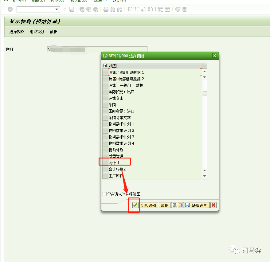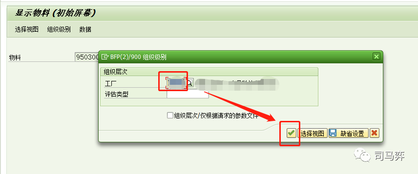 选择自己需要查看物料的工厂(如公司没有做一物料多工厂使用的业务则忽略这步。)
