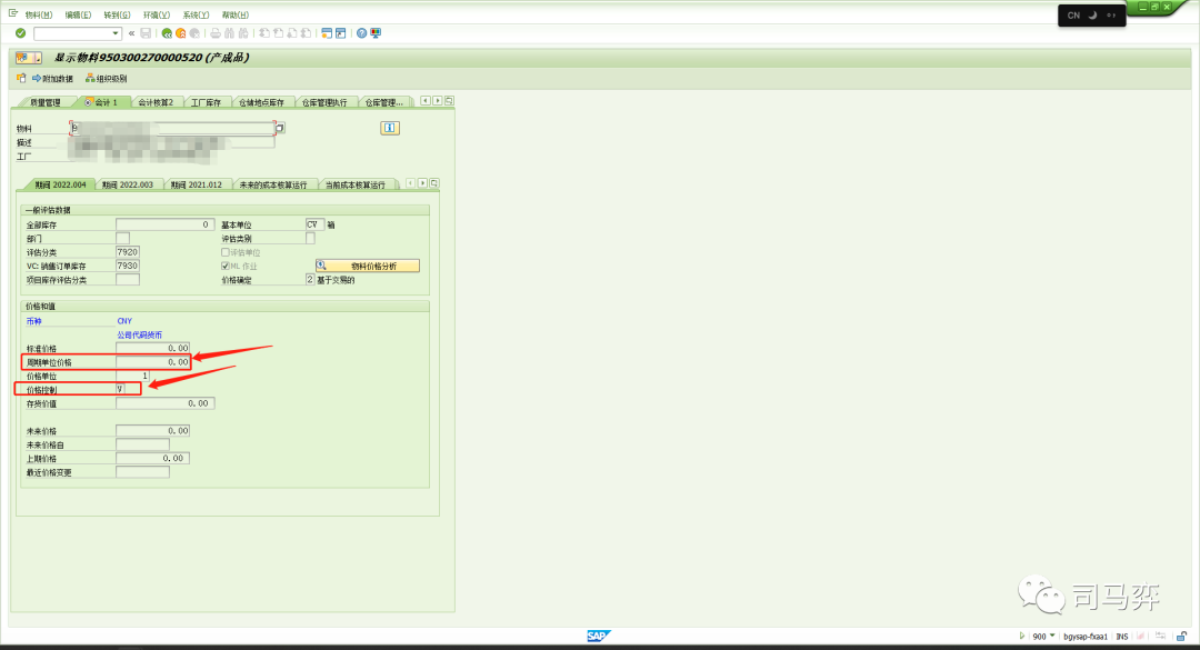 2、我们知道物料的成本价控制模式后,就可以根据这2个不同的方向去排查了,