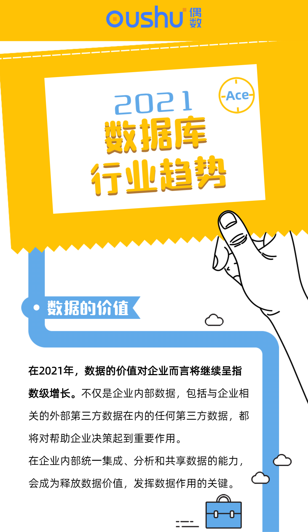 下面就让小偶带大家一起,对2021年数据库领域的趋势进行预测,帮助企业在新的一年里,更快速更有效的释放数据中蕴含的无限价值。