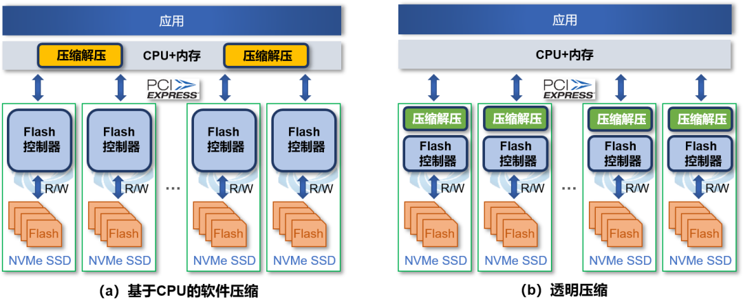 图5. (a)基于CPU的软件压缩和(b)透明压缩