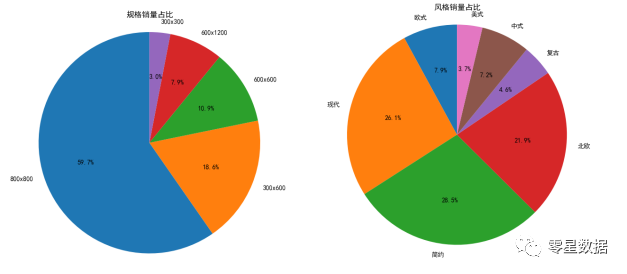 分析1:在顾客的消费倾向上,800x800销量占59.7%,占据主导,而300x600和600x600次之,顾客购买倾向和卖家倾向基本相同。