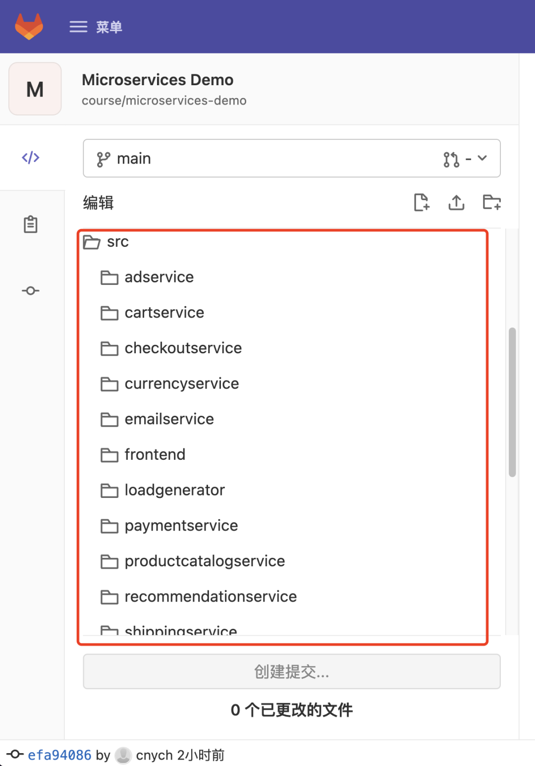 表示配置的第一个代码仓库的名称,也就是 microservices-demo