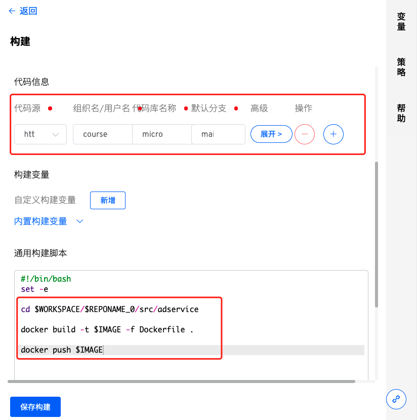 按钮,前往配置该服务的镜像是如何进行构建的。