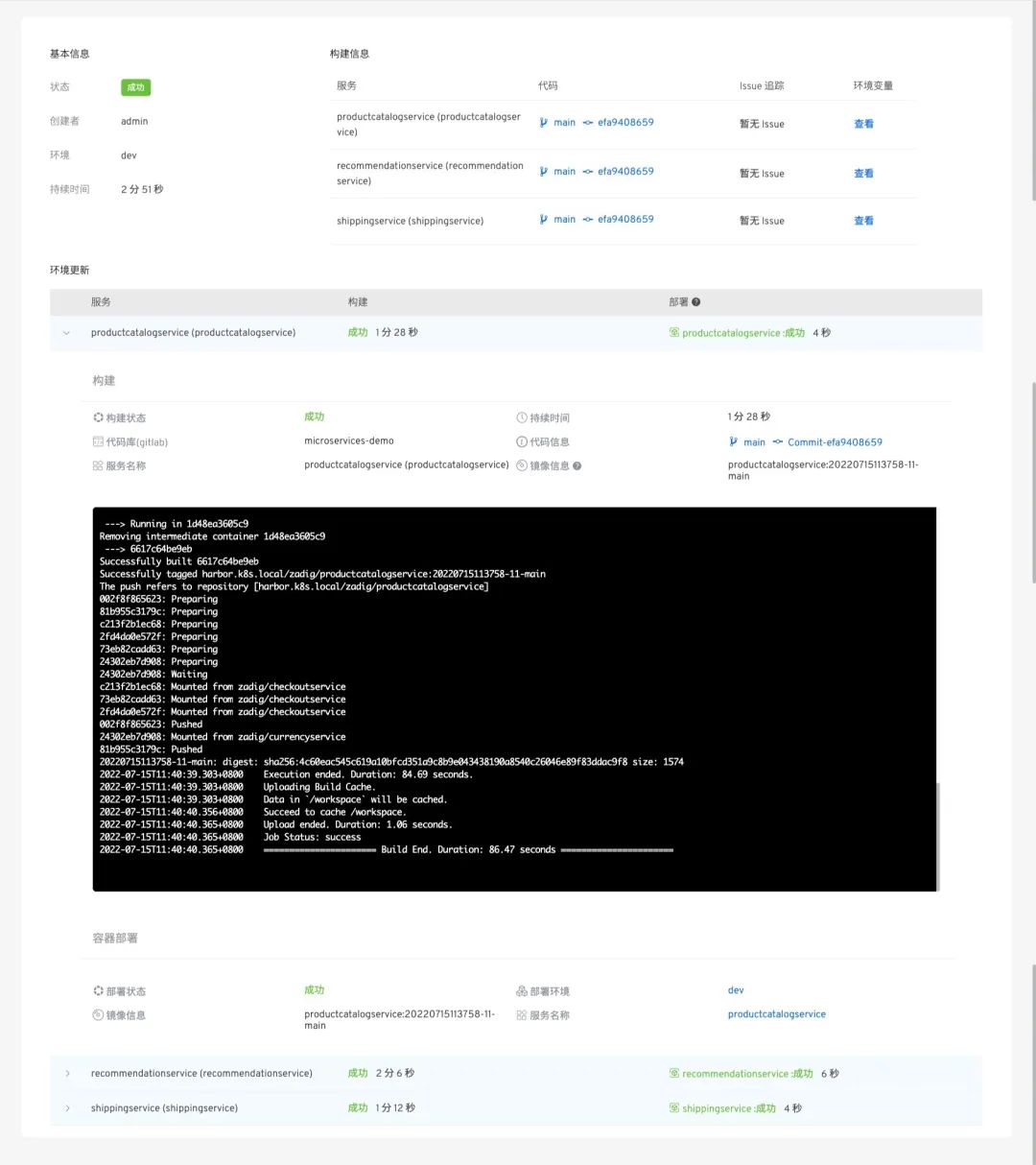 到这里我们就完成了使用 Zadig 来对微服务项目进行持续集成和交付,当然在实际的生产环境中和具体的项目业务有关系,这就需要能够结合实际需求去实践了。