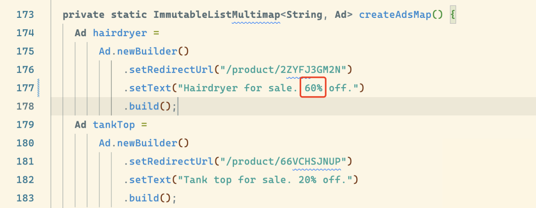 服务中的代码,修改代码 src/adservice/src/main/java/hipstershop/AdService.java