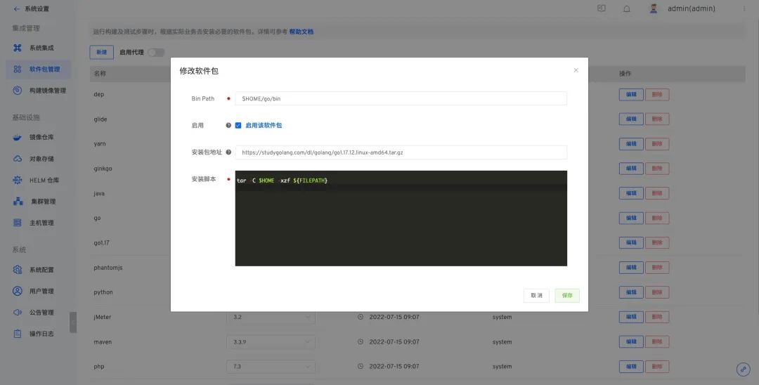 比如我们需要一个 1.17 版本的 go 环境,可以通过 系统设置 -> 软件包管理